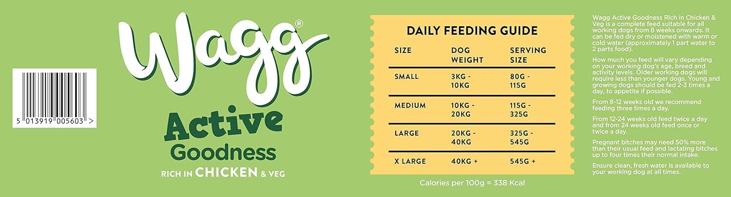 Wagg Active Goodness Complete Dry Adult Dog Food Chicken & Veg 12kg - For All Active Working Dog Breeds