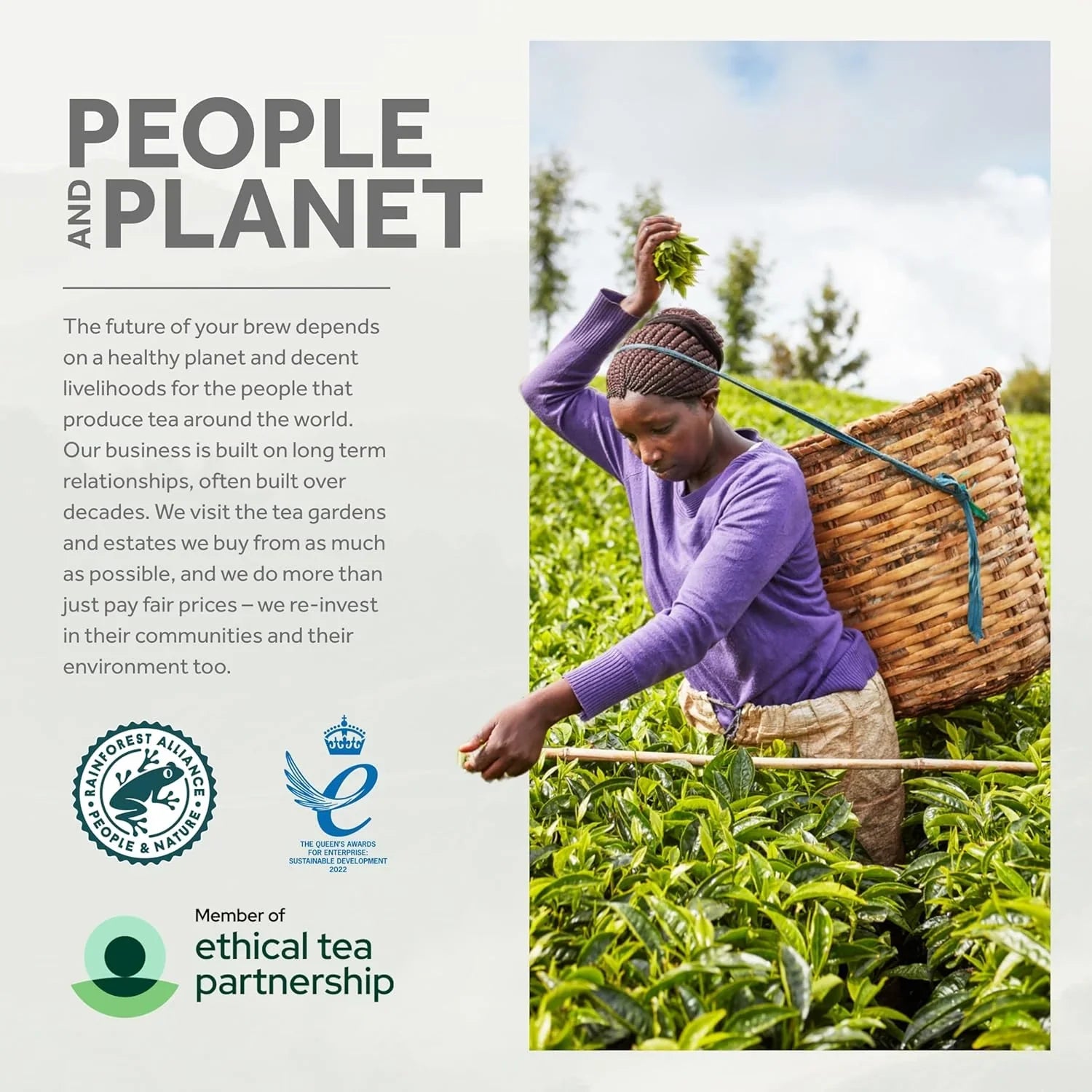 - BRINGING KINDNESS TO OUR PLANET - Committed to ethical sourcing, Yorkshire Tea is a member of the Ethical Tea Partnership and is Rainforest Alliance Certified; supporting sustainable practices and fair trade, ensuring that every cup you drink has a positive impact on tea growing communities